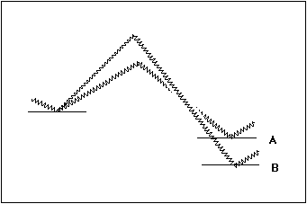 Reaction B is more exothermic than reaction A, yet A must have a lower energy of activation than B in order to be faster. Note that this necessarily requires that the potential energy diagrams must cross.