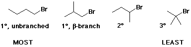 2. (10 points) Arrange the four isomeric butyl bromides (C4H9Br) in order of their expected reactivity in an SN2 reaction.