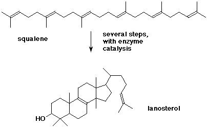 8. (12 points) The origin of steroids in many organisms is from cyclization of squalene into lanosterol, as shown below.