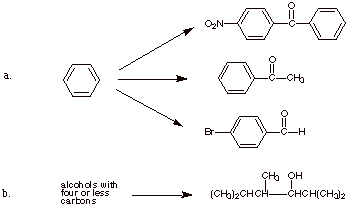 a. If excess benzaldehyde is used in the reaction below, large amounts of benzophenone and benzyl alcohol are formed, in addition to the expected diphenylmethanol. Benzophenone and benzyl alcohol are formed in 1:1 yield.