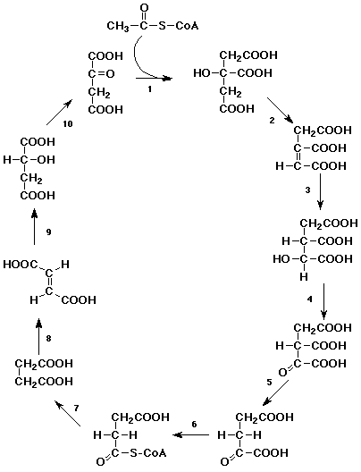 1. Your textbook illustrates the ten reactions of glycolysis, in which glucose is taken to pyruvate and then to acetyl CoA. In ten more reactions, acetyl CoA is taken to carbon dioxide (the Krebs Cycle).