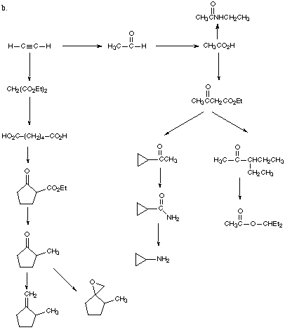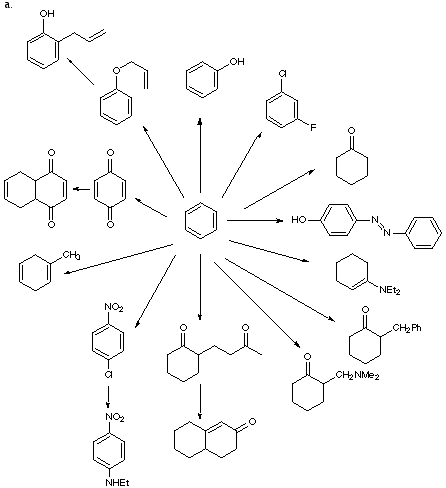 2. Show how to carry out the synthetic conversions indicated in an efficient manner. If more than one step is required, show the products for each step. Make as many synthetic connections as possible with products on the periphery of the starburst.